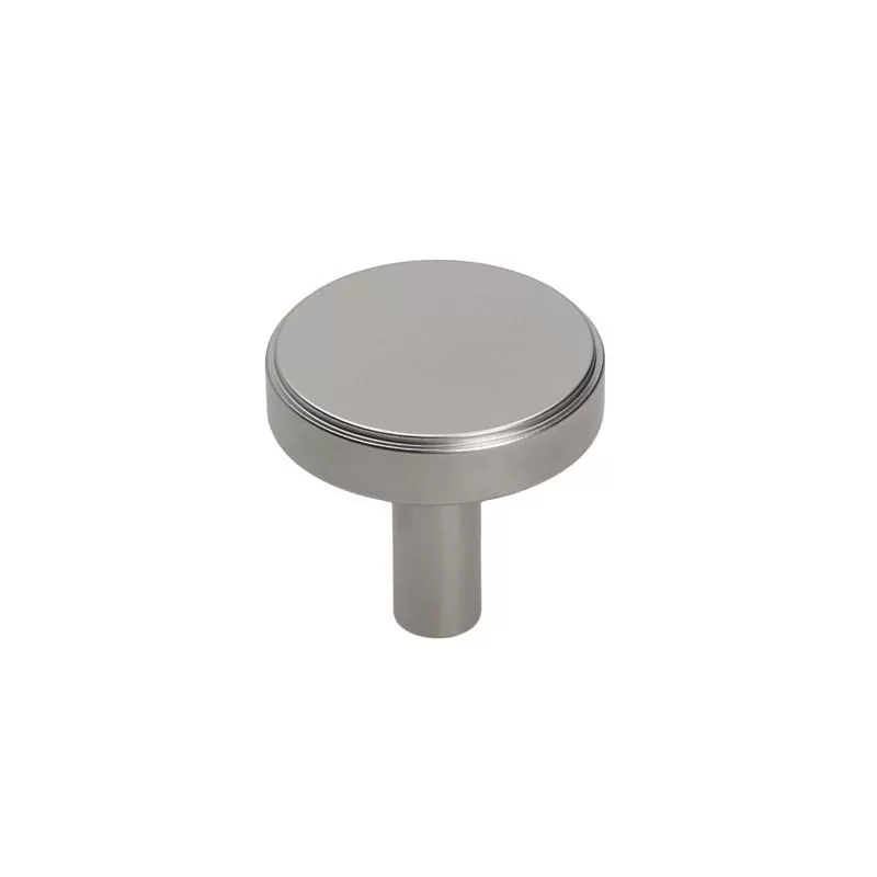Nowoczesna prosta gałka z płaskim okrągłym pochwytem. Delikatny frez na krawędzi gałki dodaje jej lekkości i elegancji. Pasuje do wszystkich rodzajów mebli, zarówno klasycznych i nowoczesnych. Wykonana jest z wysokiej jakości stopu cynku i aluminium co gwarantuje wytrzymałość i świetny wygląd przez wiele lat.