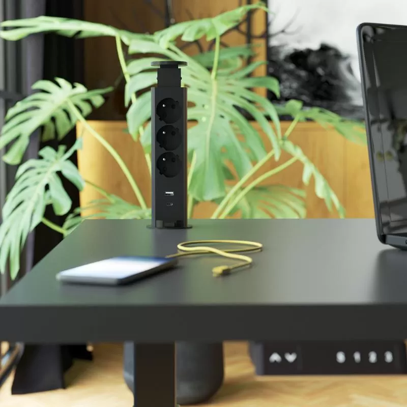Przedłużacz chowany w blacie typu TOWER 3x230V, 1xUSB A (QuickCharge 3.0), 1xUSB C (PowerDelivery 20W) - TUBUS REJS