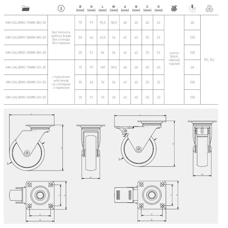 Kółko meblowe CALIBRO GTV fi35 h-50,5 Z HAMULCEM