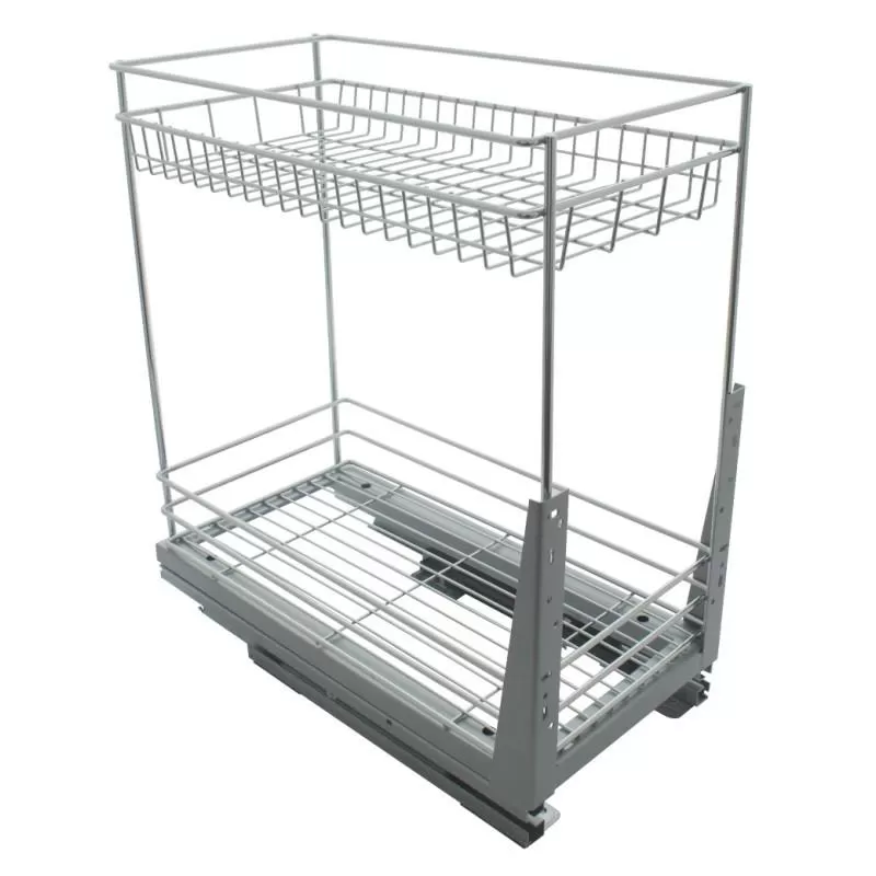 Kosze cargo mini Amix Deluxe to produkty wyposażone w wysokiej jakości prowadnice dolnego montażu z modułem cichego domykania. Takie prowadnice zapewniają dużą stabilność kosza, wygodny, prosty montaż oraz bezawaryjną pracę na lata. Chromowane wykończenie zapewnia ochronę przed korozją oraz schludny wygląd.
