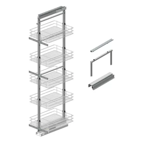 Kuchnia wyposażona w kosze cargo Maxi, Midi oraz Mini, nabiera klasy oraz praktyczności w codziennym użytkowaniu, takie rozwiązanie pozwala na perfekcyjne wykorzystanie przestrzeni w słupkach wysokich, średnich lub szafkach o standardowej wysokości pod blatem. Technologia cichego domyku tzw. „soft-close” umila codzienną pracę w kuchni. Zakres regulacji wysokości ramy pozwala na dopasowanie go do szafek o różnych wysokościach.