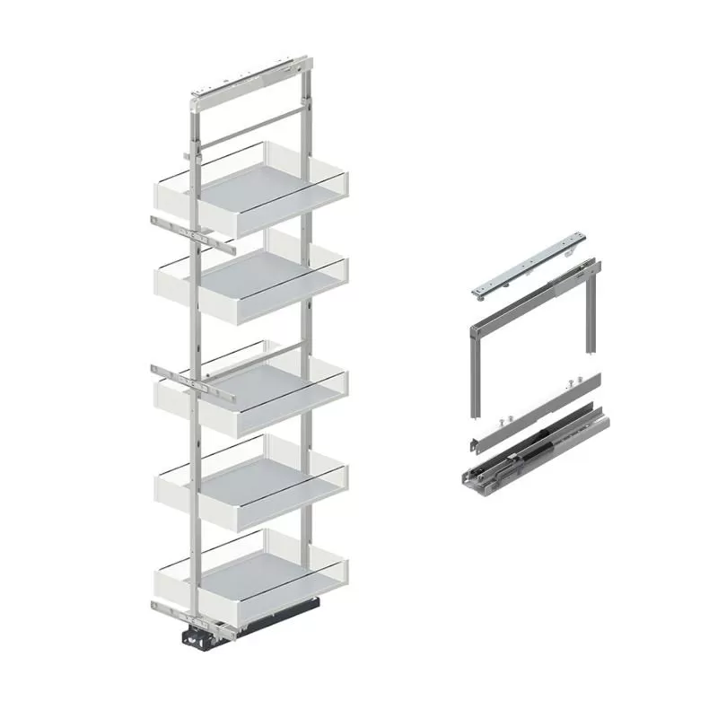 Kuchnia wyposażona w kosze cargo Maxi, Midi oraz Mini, nabiera klasy oraz praktyczności w codziennym użytkowaniu, takie rozwiązanie pozwala na perfekcyjne wykorzystanie przestrzeni w słupkach wysokich, średnich lub szafkach o standardowej wysokości pod blatem. Technologia cichego domyku tzw. „soft-close” umila codzienną pracę w kuchni. Zakres regulacji wysokości ramy pozwala na dopasowanie go do szafek o różnych wysokościach.