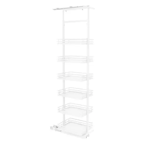 Możliwość zawieszenia półek na różnych wysokościach pozwala na zagospodarowanie przestrzeni w najefektywniejszy sposób. Dzięki temu dla przykładu, na dole stworzysz miejsce na butelki, a nad nimi położysz przyprawy które wymagają mniej przestrzeni. Dostęp do wszystkich produktów uzyskasz odsuwając w wygodny sposób jeden front, zamiast przeszukiwać dogłębnie kilka szafek po kolei.
