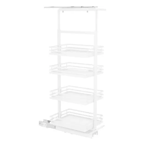 Możliwość zawieszenia półek na różnych wysokościach pozwala na zagospodarowanie przestrzeni w najefektywniejszy sposób. Dzięki temu dla przykładu, na dole stworzysz miejsce na butelki, a nad nimi położysz przyprawy które wymagają mniej przestrzeni. Dostęp do wszystkich produktów uzyskasz odsuwając w wygodny sposób jeden front, zamiast przeszukiwać dogłębnie kilka szafek po kolei.