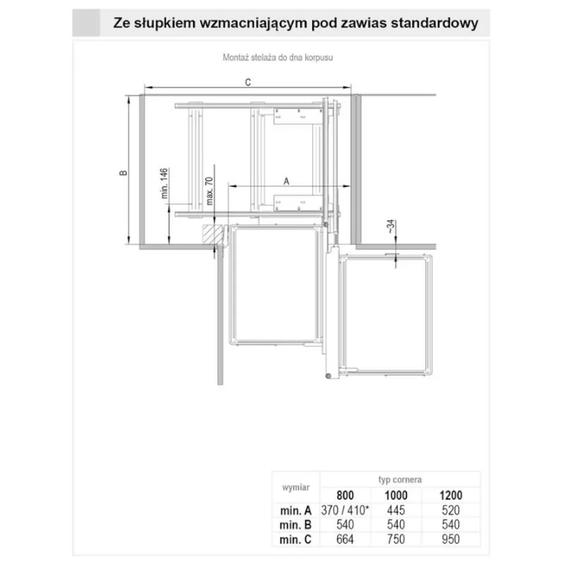 Kosz do szafki narożnej z frontem na zawiasach równoległych lub zwykłych