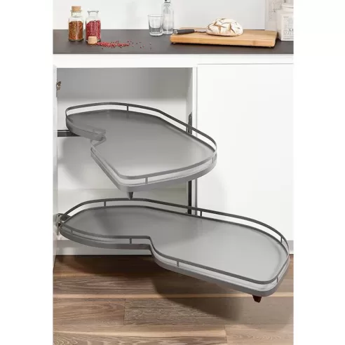 LeMans to system półek wysuwnych przeznaczonych do zagospodarowania szafki narożnej. Półki wysuwają się całkowicie poza szafkę niezależnie od siebie i umożliwiają swobodny dostęp do przedmiotów na nich umieszczonych. Produkty PEKA (KESSEBOHMER) to bezkompromisowa jakość przeznaczona dla osób którzy poszukują rozwiązania estetycznego, praktycznego i bezawaryjnego na lata. Drewniane półki wykończone są stalowym relingiem lakierowanym proszkowo lub chormowanym (w zależności od wersji i koloru). Dno półki pokryte jest specjalną antypoślizgową powłoką "RUTSCHSTOPP". Półki LeMans można dodatkowo wyposażyć w funkcję cichego domyku poprzez zastosowanie odpowiednich modułów dopasowanych kolorystycznie.