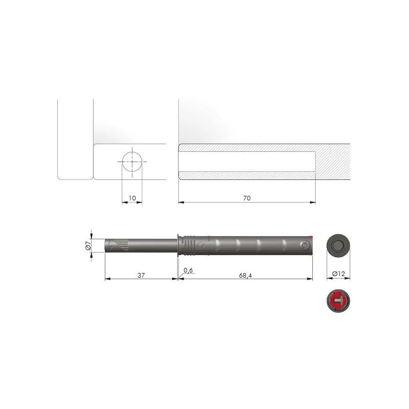 Mocny odbojnik z gumką Italiana-Ferramenta. Najwyższa jakość wykonania, możliwość montażu w boku korpusu lub w adapterze, odbojniki posiadają bardzo szeroki zakres regulacji.