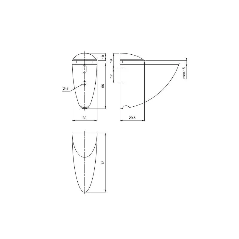 Elegancki uchwyt do półek, wykonany z metalu (ZnAl), wykończony w kolorze CHROM. Uchwyt posiada w zestawie osłony z tworzywa sztucznego chroniące powierzchnie (np. szkło) przed uszkodzeniami, kołki rozporowe wraz w wkrętami do montażu uchwytu do ściany oraz śrubę regulacyjną.