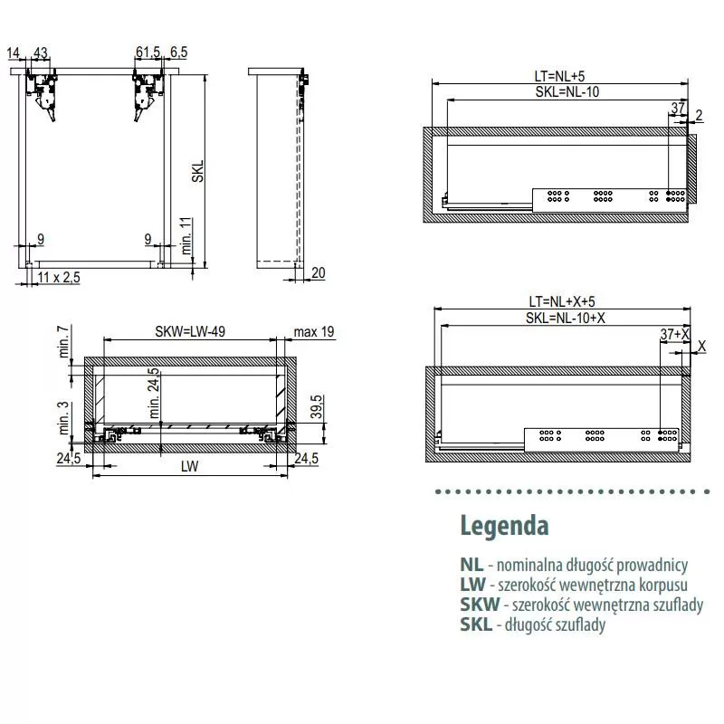 BOKI SZUFLADY O GRUBOŚCI MAKSYMALNIE 19mm (od 16 do 19mm)