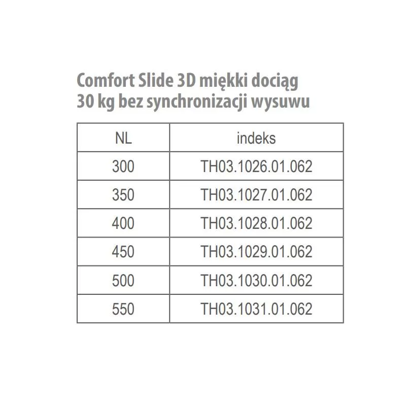 Prowadnice COMFORTSLIDE 30kg 3D 450mm pełny wysuw