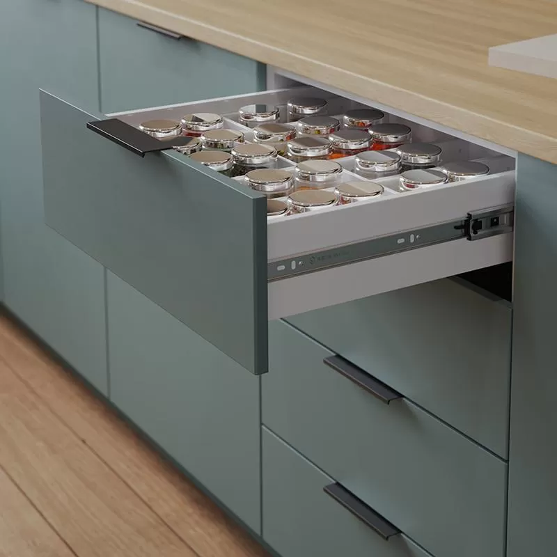 Bezproblemowy dostęp do zawartości szuflady dzięki płynnemu wysuwowi.