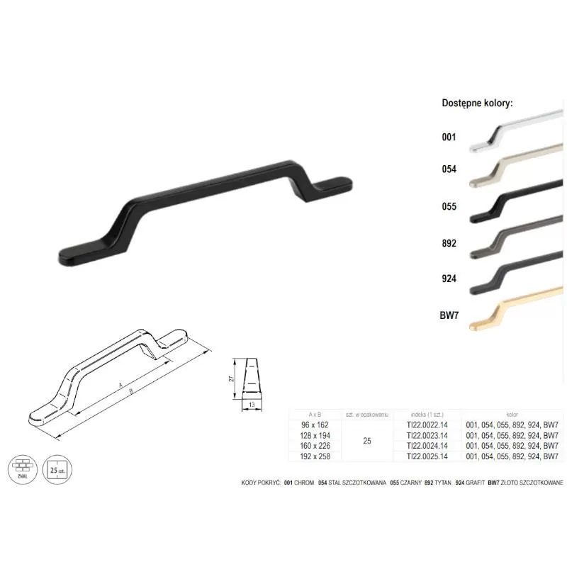 Nowoczesny uchwyt o minimalistycznym i ponadczasowym wzorze. Uchwyt wykonany jest z metalu (ZnAl), z najwyższą dbalością o detale. Dostępny jest w wielu wariantach kolorystycznych co pozwoli dopasować go do każdego wnętrza.