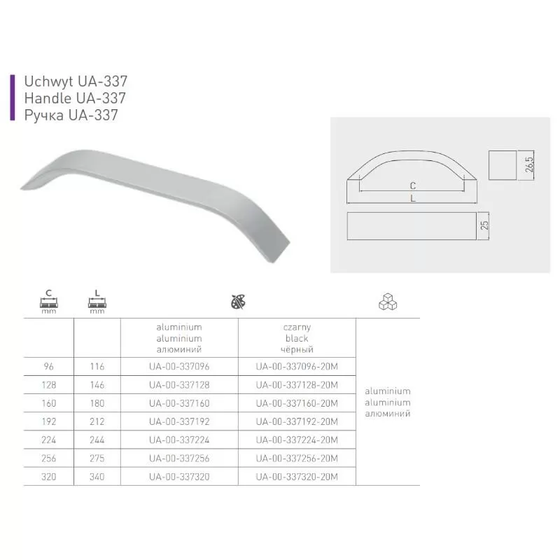 Uchwyt meblowy – GTV 337 CZARNY MAT 256mm