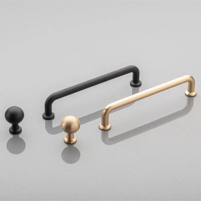 Nurty skandynawskie obecne są nawet w takich detalach jak uchwyty. Uchwyty i gałki NORD to połączenie industrializmu z nowoczesnym wzornictwem. Ta niezwykła i oryginalna forma uchwytu nada elegancji oraz nowego charakteru meblom. Prosty kształt pręta w części pochwytowej będzie idealnie pasował do każdego rodzaju frontów. Kolekcja NORD sprawdzi się doskonale w każdym rodzaju pomieszczenia, zarówno w kuchni i łazience, jak i salonie, pokoju dziennym oraz gabinecie. Kolekcja występuje w trzech wersjach kolorystycznych: mosiądzu, złocie szczotkowanym oraz czarnym macie. Jego kształt pozwala na montaż pionowy jak i poziomy, co dodaje mu uniwersalności.