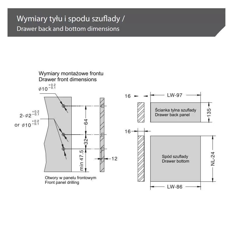 - bardzo grube, solidnie wykonane boki oraz elementy montażowe szuflad