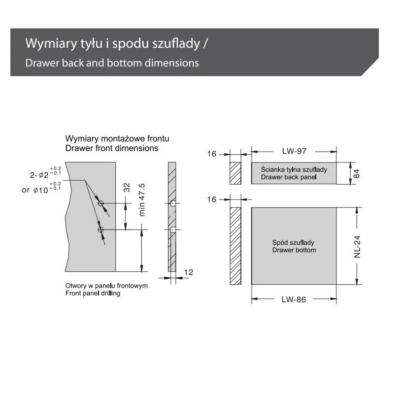 - bardzo grube, solidnie wykonane boki oraz elementy montażowe szuflad