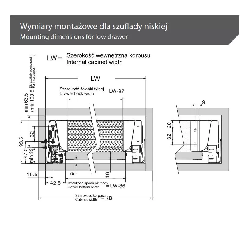 - mocowanie tylnej ścianki wysokie: 199mm