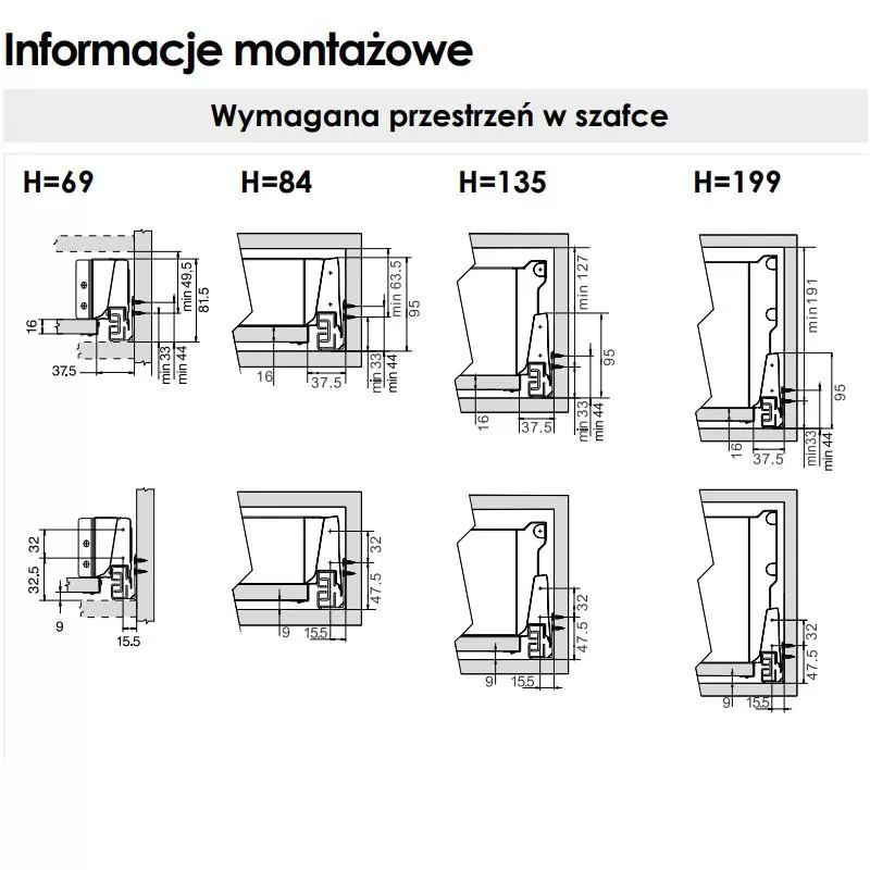 - wymiarowanie analogiczne do szuflad BLUM TANDEMBOX
