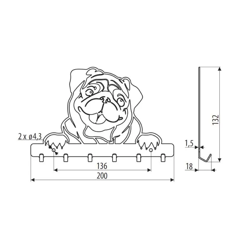 Unikalny, piękny wieszak na klucze lub niewielkie przedmioty przeznaczony do montażu bezpośrednio na ścianie bądź płycie meblowej. Wieszak wykonany jest ze stali, wzór wykonany jest z niebywałą dbałością o szczegóły, a powłoka lakiernicza z delikatną strukturą jest odporna na drobne zarysowania.