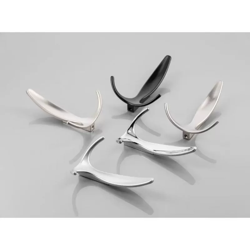 Wieszak E18 charakteryzuje się prostym, minimalistycznym designem. Idealny dodatek do kuchni, łazienki, holu oraz przedpokoju. Subtelnie wyprofilowane ramiona wieszaka są bardzo funkcjonalne, a jednocześnie stanowią uniwersalny element dekoracyjny, dopasowujący się do wnętrz urządzonych w różnorodnej stylistyce. Wykonany w pięciu wersjach kolorystycznych: chromie, satynie, aluminium, stali szczotkowanej oraz czarnym macie.