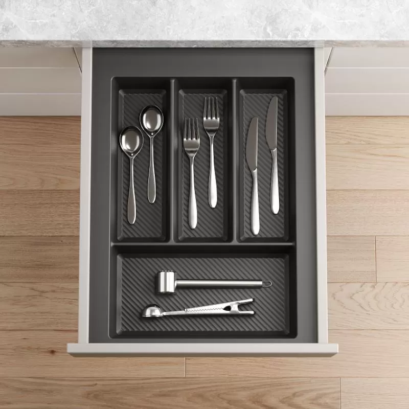 Wkłady wykonane są z tworzywa sztucznego o zwięksoznej grubości. Produkt został zaprojektowany w taki sposób, aby umożliwiał składowanie najbardziej pospolitych przedmiotów kuchennych w szufladzie. Wkłady można dociąć o kilka mm tak aby dopasować je do różnego rodzaju szuflad, zróżnicowanych producentów. Tworzywo na spodach komór jest teksturowane aby niwelować możliwość zarysowań.