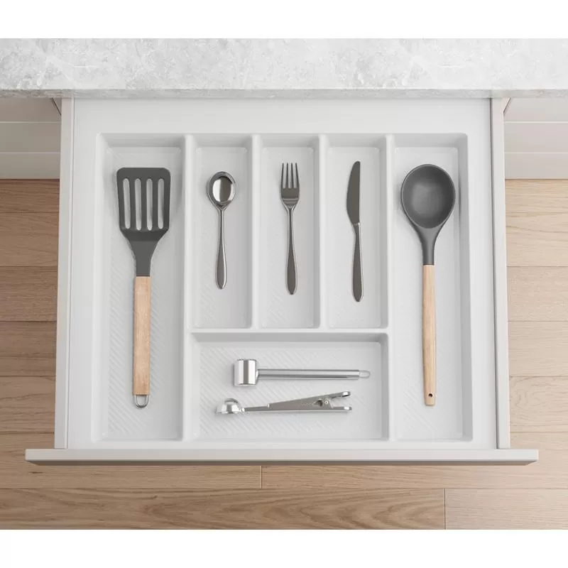 Wkłady wykonane są z tworzywa sztucznego o zwięksoznej grubości. Produkt został zaprojektowany w taki sposób, aby umożliwiał składowanie najbardziej pospolitych przedmiotów kuchennych w szufladzie. Wkłady można dociąć o kilka mm tak aby dopasować je do różnego rodzaju szuflad, zróżnicowanych producentów. Tworzywo na spodach komór jest teksturowane aby niwelować możliwość zarysowań.