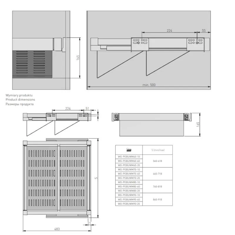 - Szerokość wewnętrzna korpusu [mm]: 560 - 618