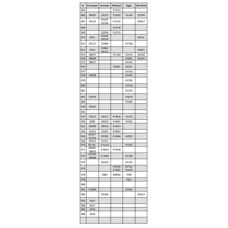 UWAGA! monitor nigdy nie odzwierciedli faktycznej barwy zaślepki, kolory na monitorze będą inna niż w rzeczywistości i są zależne od indywidualnych ustawień monitora. Do prawidłowego doboru zaślepki prosimy posiłkować się katalogiem producenta w którym znaleźć można kod płyt meblowych różnych producentów najbardziej zbliżonych kolorystycznie do danej zaślepki.